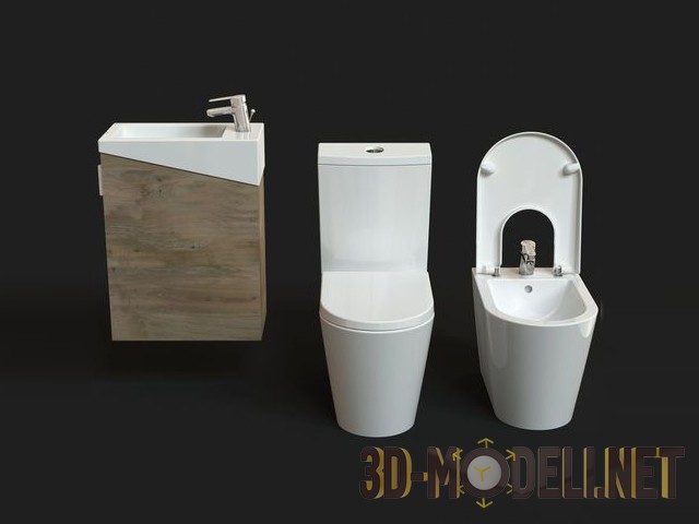 3D модель компакта-унитаза, биде и прямоугольной раковины из серии «Urb.y Plus», производство Sanindusa. Это линия сантехники, предназначенная и для обычных ванных комнат, и даже тех, у кого более сложные размеры. Серия отличается блестящим сочетанием решений для экономии пространства, универсальности и эстетичности.
