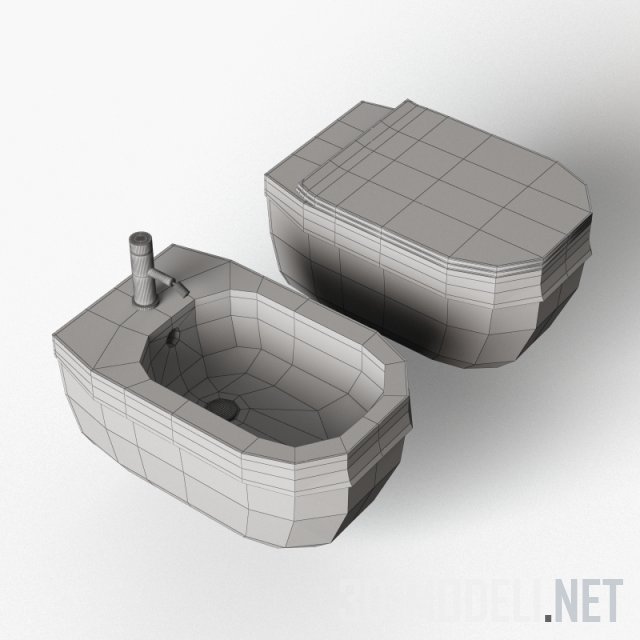 Современная сантехника HATRIA Abito производства Италия для интерьера ванной комнаты: консольные унитаз и биде в черном керамическом корпусе с белой крышкой.