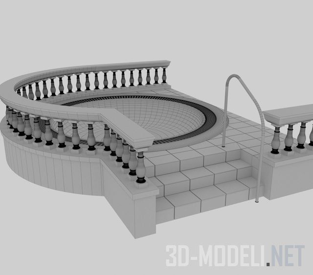 Хорошего качества 3d модель габаритной ванны круглой формы, предназначенной для оформления зон в СПА-пространстве. Текстуры присутствуют.