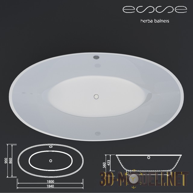 3D модель современной овальной ванны из коллекции «Jamba», от производителя сантехники Esse. Материалом изготовления ванны является литой мрамор, габаритные размеры: 184 х 95 х 56 см.