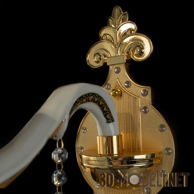 3d модель одиночного бра A6610AP-1GO от ARTE LAMP. Прекрасная серия BELVEDER, входящая в коллекцию Crystal, предлагает настоящую «жемчужину» - это одиночное бра. Керамическое основание, плюс золотая отделка, изящная форма и утонченный дизайн - такой светильник придаст стенам новое очарование. Размеры бра A6610AP-1GO: 33х15х34 см. Тип цоколя - E14, на одну лампочку 40W.