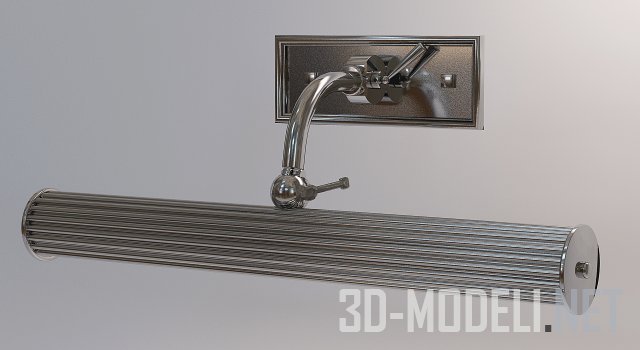 Настенный светильник от Baga. Бра Art. 914, предназначено для подсветки картин, панно и пр. Гофрированный серебристый металлический горизонтальный корпус с лампой размещен на небольшом изогнутом кронштейне, с возможностью регулировки наклона корпуса с помощью шарнира с фиксатором. Еще один шарнир с фиксатором находится у основания кронштейна, на прямоугольной горизонтальной планке с креплением.