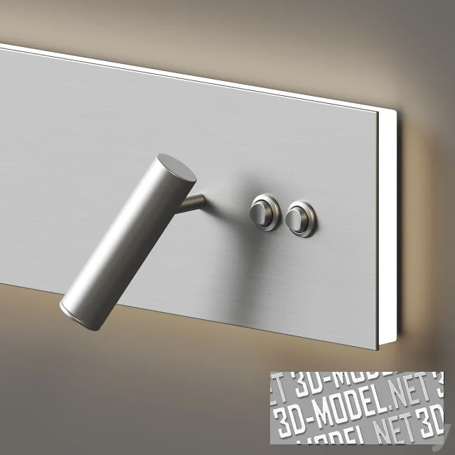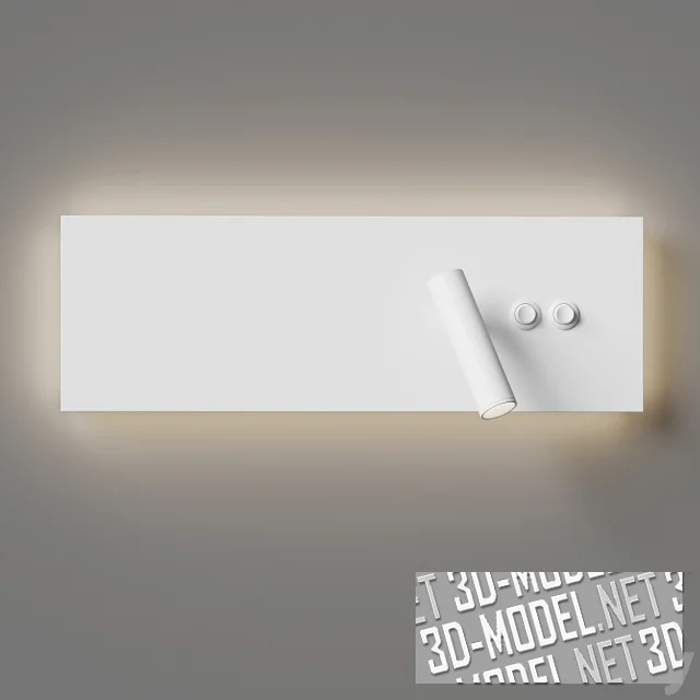 Современный вариант бра Edge Reader от Astro Lighting. Светильник выполнен в виде небольшого цилиндрического металлического тубуса на подвижном кронштейне, закрепленном на прямоугольной площадке в одной из третей. Площадка имеет металлическую плоскость, светорассеивающий периметр, чуть скрытый за передней пластиной и пару кнопок включения/выключения двух источников света - точечного в тубусе и рассеянного в периметре площадки. Габарит светильника: 45х15х9,5см. Возможно размещение как вертикально, так и горизонтально. Отделка представлена в четырех декорах: белый гладкий, брашированные «никель», серебристый, золотистый.