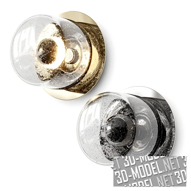 Минималистичный настенный светильник Cupallo от дизайнера David Pompa. Основание выполнено в виде металлического полого цилиндра с тарелкообразным расширением. В корпусе смонтирована лампа с зеркальной частью колбы. Лампу закрывает стеклянный цилиндрический плафон ручного дутья с множеством пузырьков воздуха. Отражаясь от полированного металла корпуса стекло с пузырьками создает интересную игру света. Габарит бра - d15/h14см. Представлено три варианта металлических оснований: алюминий, латунь, бронза.