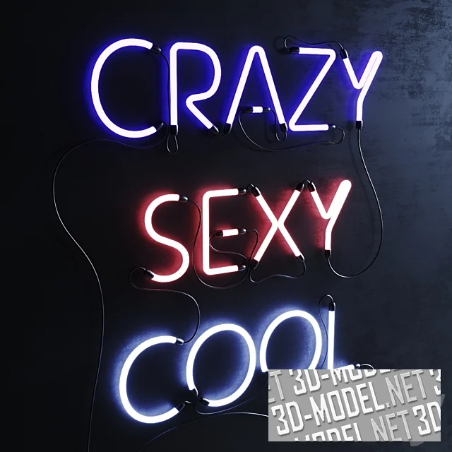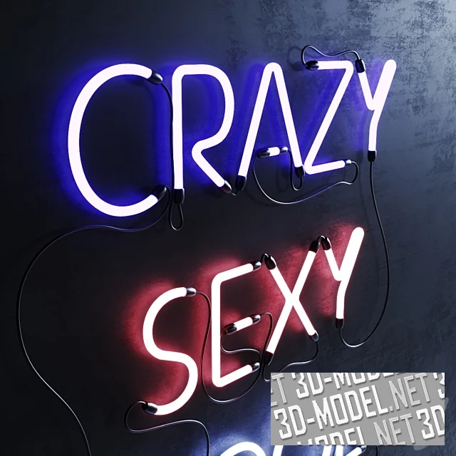 Неоновый вариант освещения в виде трех слов, расположенных друг под другом: CRAZY, SEXY и COOL. Каждая строка выполнена своим цветом – ярко-синим, насыщенно-красным и холодным белым, благодаря чему надпись смотрится динамично и чуть дерзко. Гибкие неоновые трубки образуют плавные контуры букв, а черные крепления и проводка подчеркивают графичность и дают легкий индустриальный оттенок. Такой элемент легко становится акцентом в любом современном интерьере – баре, студии, спальне или арт-пространстве, создавая атмосферу свободы и ночной энергетики.
