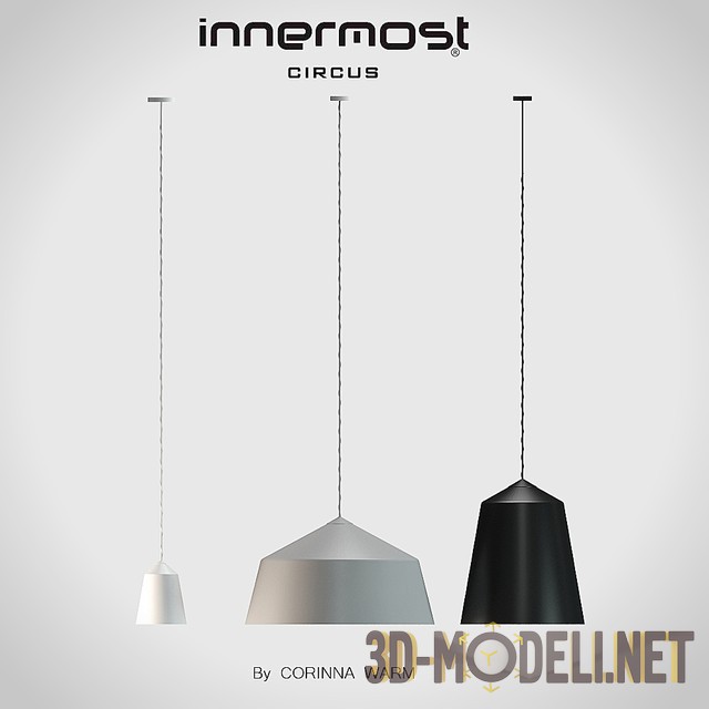 3D-модель подвесов Innermost Circus от Corinna Warm. Такие светильники - это очень красивый способ декорирования пространства. Они разработан специально для современных домов и идеально подходят для стилизации интерьера. Элегантный стиль подчеркивает облегченный алюминий, из которого изготовлены подвесы. Innermost Circus поставляются в различных размерах - можно выбирать из небольших, тонких, больших или широких, в зависимости от того, что нужно внутри дома. Классический белый, золотой металлик и матовый черный - среди этих светильников легко найти тот, который соответствует нужному дизайну. Размеры подвесов следующие: малый -18 см высота и 15,4 см диаметр, средний - 42,3 см высота и диаметр 36 см, и большой - 31,4 см высота, диаметр которого составляет 56 см.