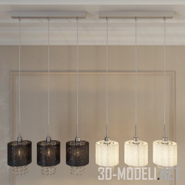 Серия подвесных светильников Italux Astra, с текстильным абажуром и хрустальными подвесками. Набор содержит одинарные, двойные и тройные варианты люстр:
