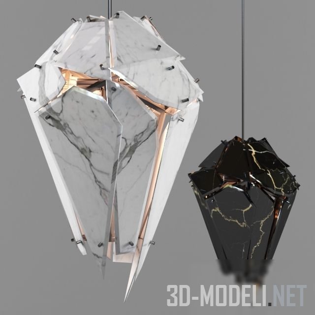Подвесной светильник Edie от Romatti – это деконструированный традиционный фонарь, но созданный из мрамора. Эффект оторванности элементов от основания напоминает чешую или перья. Драматический черный цвет и фактура камня имеет почти готическое ощущение, белый смотрится элегантно и стильно.