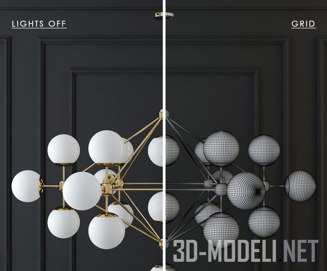 Великолепная модель люстры с шарообразными белыми плафонами, разработана ведущим современным американским дизайнером интерьеров Джейсоном Миллером (