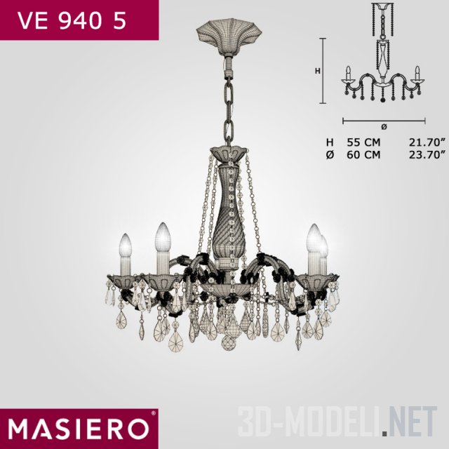 Изящная подвесная люстра для классического пространства, производства бренда Masiero, модель VE 940 5. Золотая отделка, хрустальные подвески, лампочки-свечи формируют элегантный, гармоничный дизайн. Размеры светильника: 55 х 60 см.