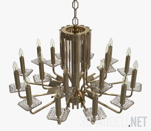 Большая люстра Faustig на 18 ламп. Современная трактовка старинных люстр со свечами. В этой модели лампы накаливания с удлиненными колбами вкручены в металлические цилиндры на хрустальных квадратных блюдцах, имитируя свечи на подсвечниках. Конструкция люстры собрана из металлических скоб золотистого цвета со «свечами» на концах. «Свечи» формируют два круга: малого диаметра из шести ламп, и наружный большего диаметра из 12-ти ламп.