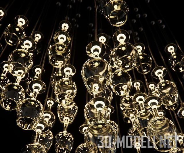 Оригинальная люстра из множества прозрачных фужеров золотистого цвета. Светильник очень подходит для интерьера ресторанов и баров. Модель выполнена в 3ds Max 2015.