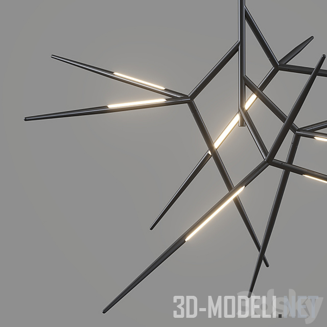 Подвесной светильник прямого и отраженного света, люстра Spear от итальянского бренда Venicem. Светильник в трех материалах (может быть светлая полированная латунь, полированный черный никель или матовый черный никель). Светодиодная лента помещена внутри дужек. Размер: 1600 x 1600 x 980 мм.