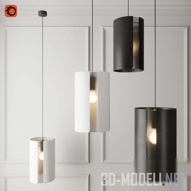 Потолочные светильники в виде разрезанных сбоку цилиндров разного цвета, с круглыми лампами накаливания. Светильники идеально впишутся в современный интерьер и помогут создать необходимый уровень освещения.
