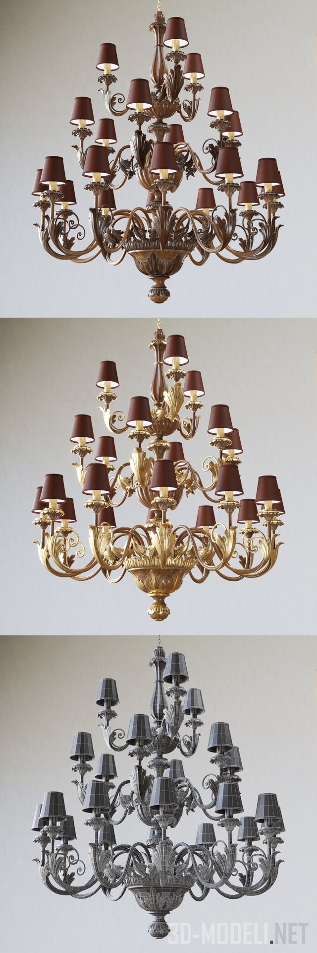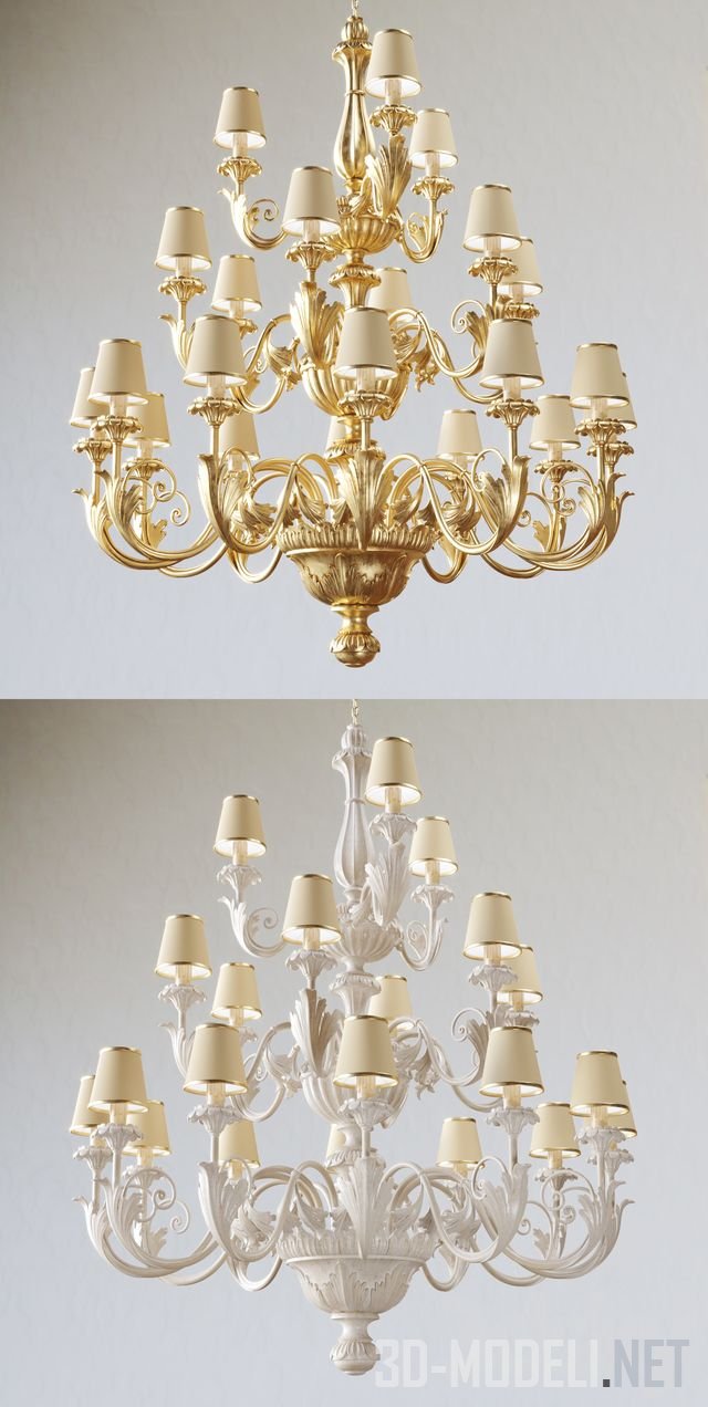 Красивая классическая люстра Silvano Grifoni, количество ламп - 21. Для отделки предлагается 5 видов материала: белое дерево, белое дерево с золотом, винтажное золото, дерево темное и темно-золотистое.