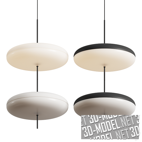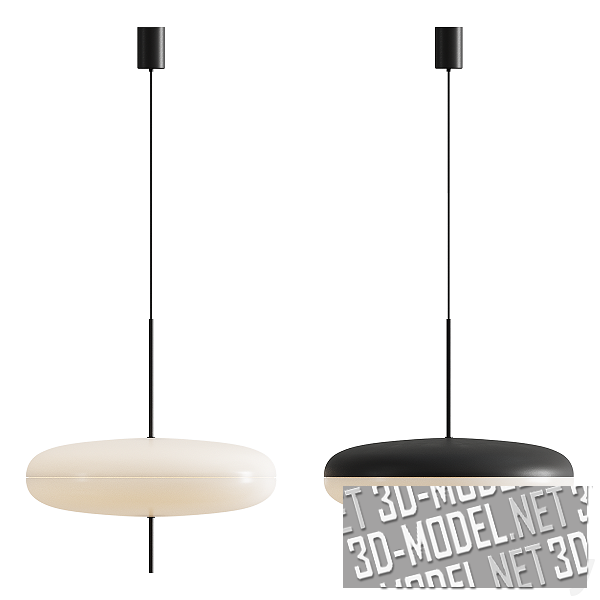 Оригинал светильника Model 2065 Lamp был разработан в 1950 году итальянским дизайнером Gino Sarfatti. Данная модель от Astep - современное прочтение этой модели. Длинный тонкий подвес черного цвета, «спицей пронзает» приплюснутый круглый плафон. Варианты плафона: белый с белым и белый с черным. Габариты светильника: d53,8см и h54,6см. Максимальная длина подвеса: 200см.