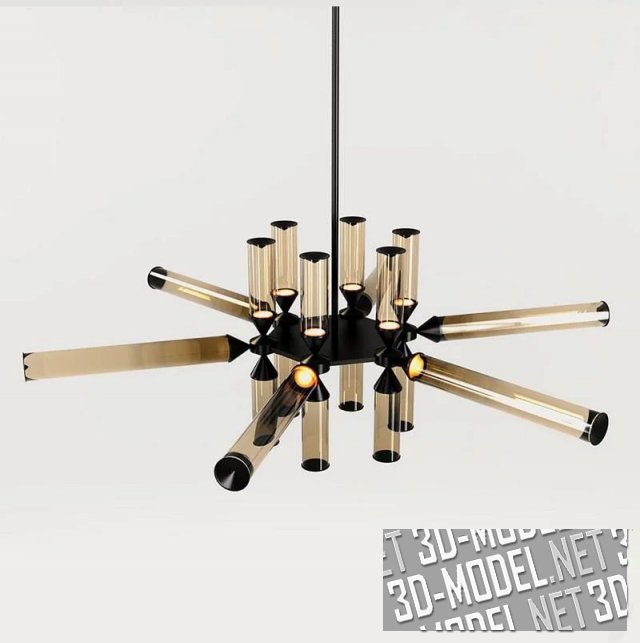 Название этой люстры по задумке автора Джейсона Миллера происходит от игры в шахматы (хотя по форме напоминает башни замка). Как известно, такая фигура, как ладья может прыгать на любое расстояние, но при этом она ограничена ортогональным движением. Точно так же и стекло в абажурах светильника простирается на разную длину, но всегда горизонтально или вертикально. Люстра Castle 18-01 производится брендом Roll & Hill и станет отличным выбором для различных интерьеров.