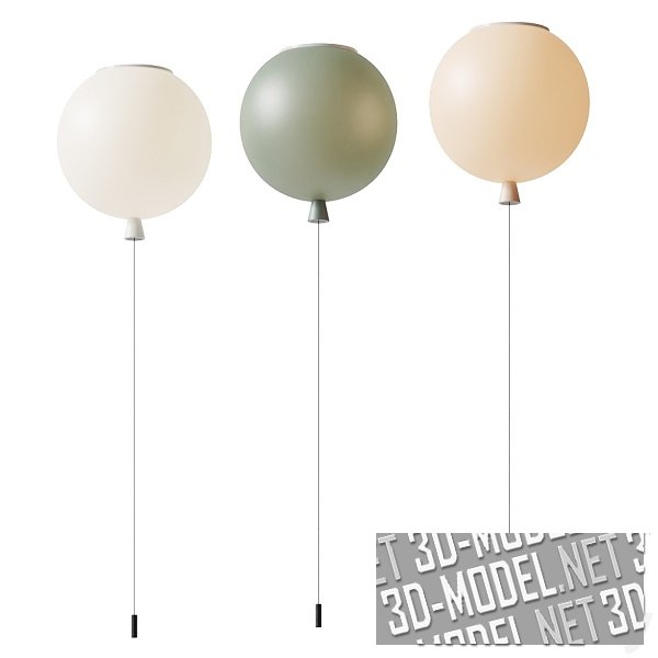 Современные потолочные светильники Memory от Brokis и дизайнера Boris Klimek в виде воздушных шаров. Нитка от шарика служит выключателем. Диаметр плафона - 40см. Высота светильника - 43см. Различные цветовые варианты позволяют создать легкую атмосферу беззаботного детства.