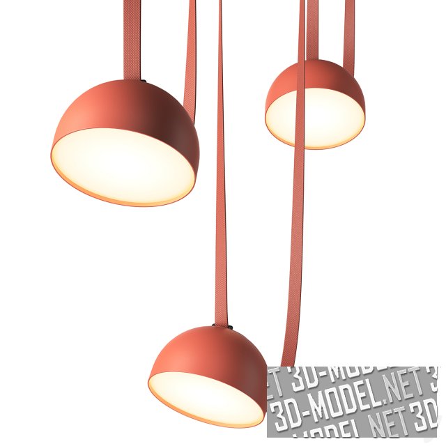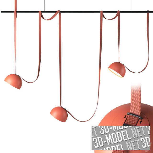Современный подвесной светильник Plusminus Semispheres от Vibia. На черной горизонтальной штанге, подвешенной на тонких тросах, размещены три металлические полусферы рефлекторов. Рефлекторы светильника смонтированы на длинном текстильном ремне. Длина ремня позволяет регулировать высоту установки светильников, относительно штанги. Терракотовый матовый цвет плафонов и ремня отлично сочетается с черным на штанге. Габарит светильника: 172х193см.
