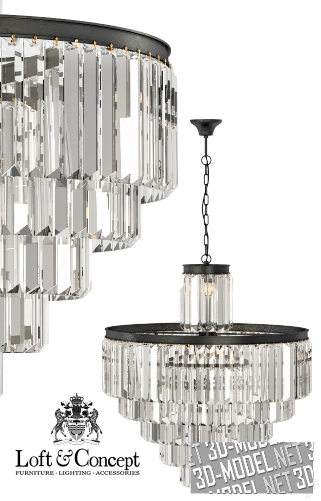Артикул 40.1127.GL.20.CH. Цвет основания черный, изготовлен из металла. Стеклянные подвески на ярусах люстры смотрятся сдержанно и стильно.
