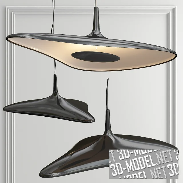 Третий светильник (COCOTTE от Faro Barcelona) с круглым черным аллюминиевым корпусом (d55/h8см) и белой светорассеивающей плоскостью внизу. Корпус подвешивается на трех тросах. Четвертый светильник - Manta S1 от Lederam (дизайнер: Enzo Cattelani), с криволинейным круглым волнистым рефлектором, черным сверху и золотистым снизу. Компактный источник света размещен на небольшой скругленной вогнутой площадке, вынесенной на тонкой спице на некоторое расстояние снизу от рефлектора. Габарит светильника: d60/h30см.