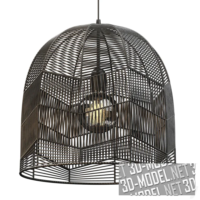 Необычный подвесной светильник из ротанга черного цвета. Плетеный абажур образует оригинальное дизайнерское решение. Диаметр люстры 350 мм.