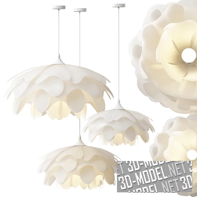 Современный подвесной светильник от Vakkerlight, с многоярусным абажуром в виде белого цветка. Фигурные лепестки изготовлены из белого акрила. Производитель предлагает три типоразмера: d42/h23см, d50/h25см, d60/h25см. Светильник рассчитан на одну крупную LED-лампу.