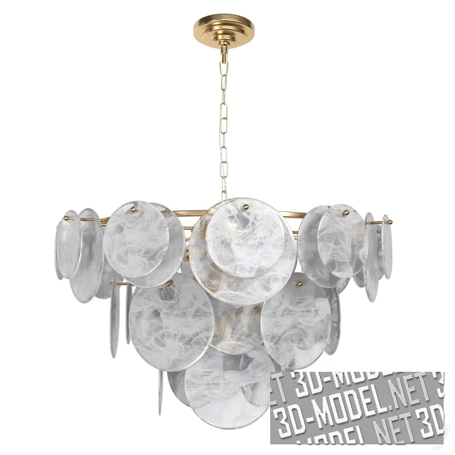 Современный подвесной светильник Elegantly (art. 2139/03/18P) от Stilfort, с абажуром из круглых стеклянных пластин ручной работы. Пластины разного диаметра подвешены парами, тремя каскадами на золотистый металлический каркас. Габарит люстры: d80/h120см.