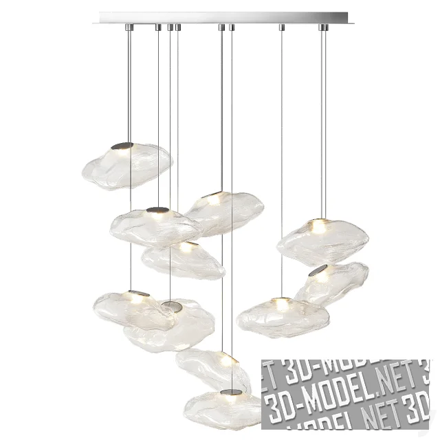 Современный подвесной светильник Bocci 73 с 11-тью плафонами из стекла ручной работы. При выдувании стекло в еще расплавленном виде размещается в термостойкой форме из гофрированной керамической ткани. Благодаря этому приему каждый плафон уникален и неповторим. Криволинейные скругленные стеклянные диски висят на тонких тросах разной длины, закрепленных на серебристой потолочной крышке. Золотистая металлическая круглая втулка с лампой размещена в центре плафона.