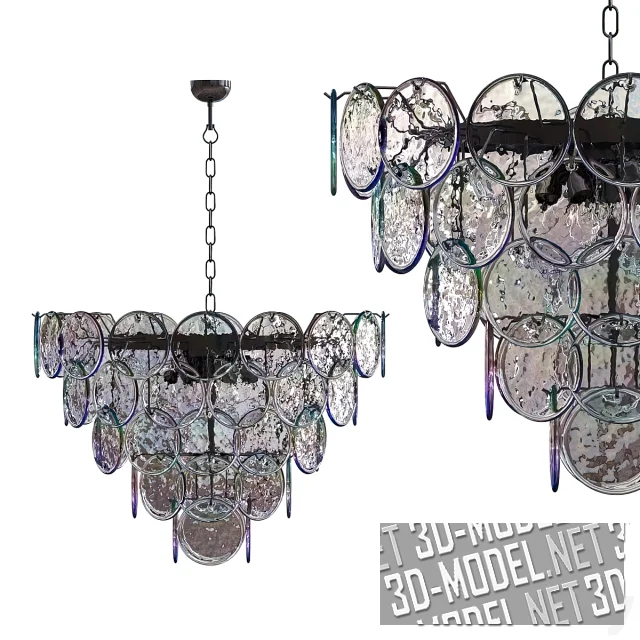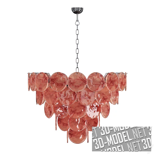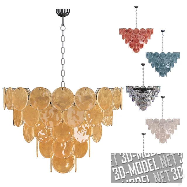 Светильник представлен в нескольких цветовых решениях - от насыщенных зелёных и красных оттенков до прозрачных и переливающихся вариантов, что позволяет подобрать модель под разные интерьеры. Она выглядит как произведение искусства и при этом остается полноценным источником освещения. Тщательно созданная трехмерная копия позволяет использовать люстру для визуализаций интерьеров, игровых проектов и анимации, сохраняя точность деталей и характерные особенности оригинала.