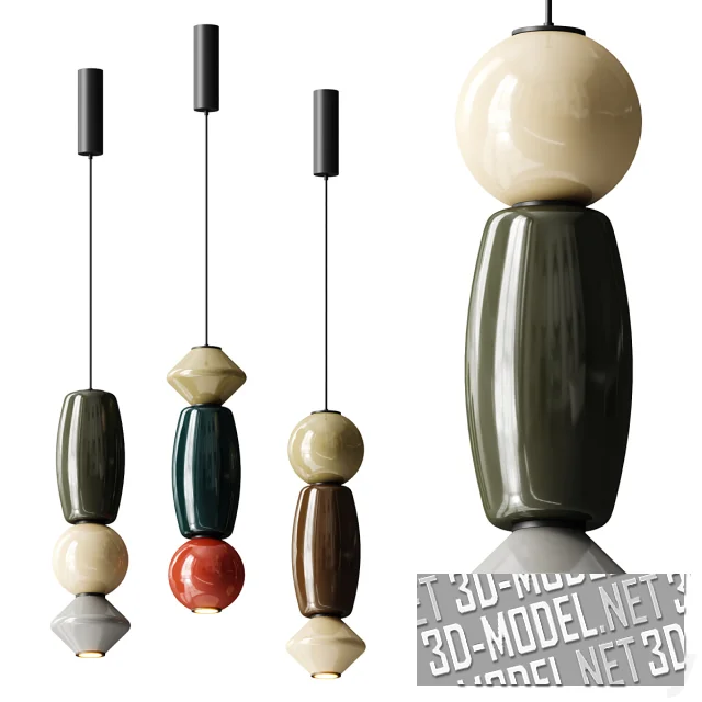 Современные подвесные светильники Papi от Aromas del Campo. Набраны из трех керамических элементов разного цвета и формы (шар, выпуклый вытянутый «бочонок», тело из двух усеченных конусов). Глянцевая поверхность «бусин» и приятные, спокойные цвета (умбра, слоновая кость, терракота, шоколадный, светло-серый, светло-оливковый, аспидный) создают интересные сочетания в этно-стиле. Габарит Papi: d18,9/h61,6см.