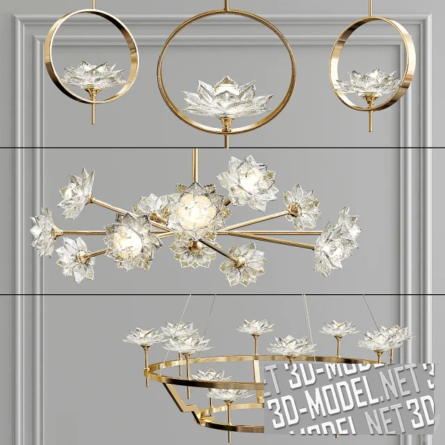 Элегантная коллекция люстр (Lotos от Lampatron) с выразительными стеклянными плафонами в форме цветков выполнена в теплом оттенке латуни и сочетает декоративность с четкой архитектурной структурой. Конструкция из тонких металлических стержней создает ощущение легкости, а прозрачные лепестки плафонов дают мягкое рассеянное свечение, подчеркивая текстуру стекла. Серия включает несколько вариантов: крупную модель с двенадцатью источниками света, изящный подвесной круглый светильник и компактную одиночную версию. Такие люстры органично смотрятся в гостиных, залах, парадных пространствах и интерьерах, где требуется выразительный декоративный акцент с нотками современного гламура и художественного дизайна.