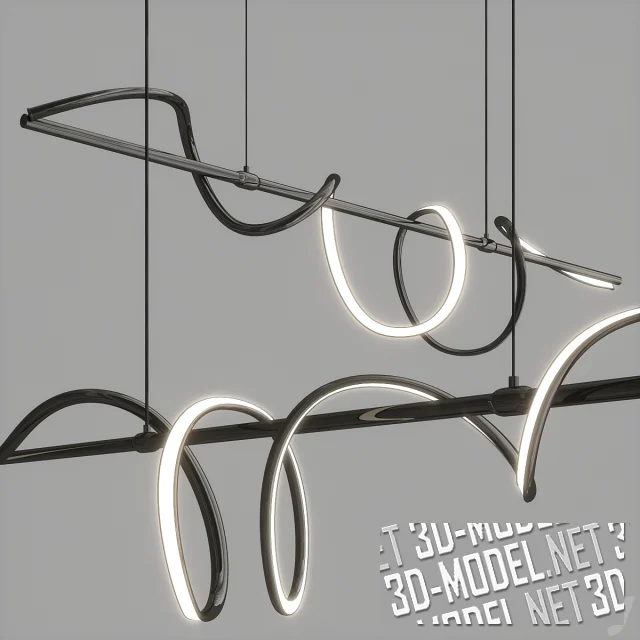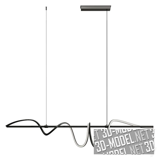 Минималистичный светодиодный подвесной светильник ADONIS B от Lampatron. Корпус выполнен в виде узкого желоба полукруглого сечения, «заполненного» светодиодной лентой с белым матовым рассеивателем. Корпус изящно обвивает свободными кольцами длинную горизонтальную штангу, подвешенной на двух черных шнурах. Данная модель представлена в черном глянцевом цвете и имеет габарит: 150х31х20см (без учета подвеса). Максимальная высота - 145см.