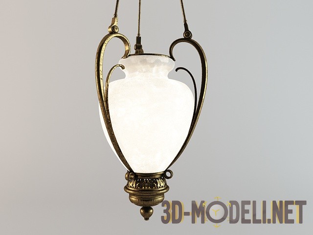 Светильник-бутон. Эта 3D модель изысканного подвесного светильника прекрасно подойдет интерьеру, выполненному в классическом стиле, или в стиле «арт-деко». На трех бронзовых нитях расположен прекрасный конусообразный плафон, с овальными формами, заключенный в бронзовые лепестки. Изящный, оригинальный и красивый подвес.