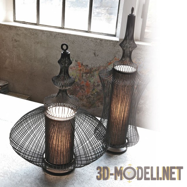 Настольный светильник «File» от Adriani Rossi. Необычная настольная лампа, с каркасом из металлической проволоки, окрашенной в черный цвет. Размеры светильника: