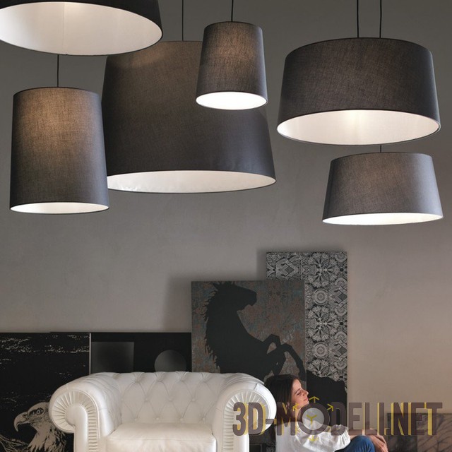Подвесные светильники Coni Adriani Rossi, Италия. Подвесы с ярким, современным дизайном, конической формы, абажуры изготовлены из серой ткани. Секрет их успеха в том, что здесь геометрия и свет сливаются воедино, давая жизнь группе замечательных светильников, функциональных и очень эстетичных. Их форма, коническая и простая, а также ткань нейтрального цвета делают этот комплект 3D-моделей универсальным вариантом освещения, способным адаптироваться к любой среде.