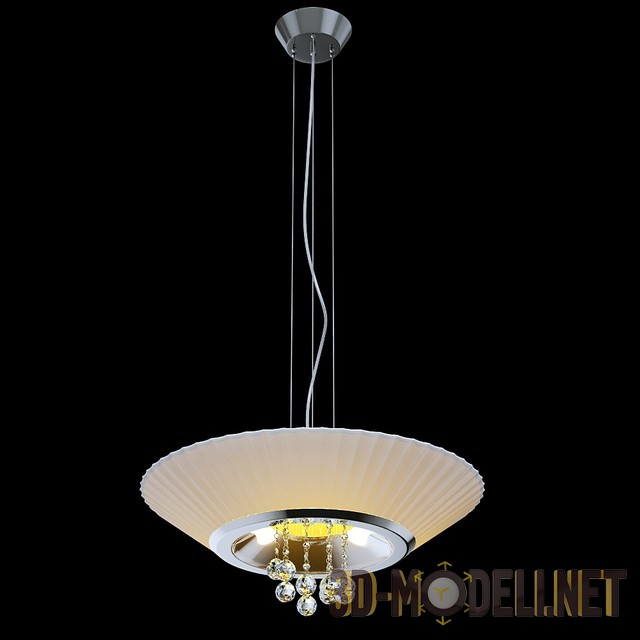 3D модель подвесного светильника Piatto MD93608-4A от Illuminati. Итальянское качество и безупречный дизайн отличает этот светильник. Плафон сделан из белого стекла, основание – хромированный металл, в качестве декоративного элемента использованы подвески из прозрачного хрусталя. Предусмотрены 4 лампы, мощностью 13Вт, патрон E14 Диаметр подвеса составляет 50 см, высота 150 см.