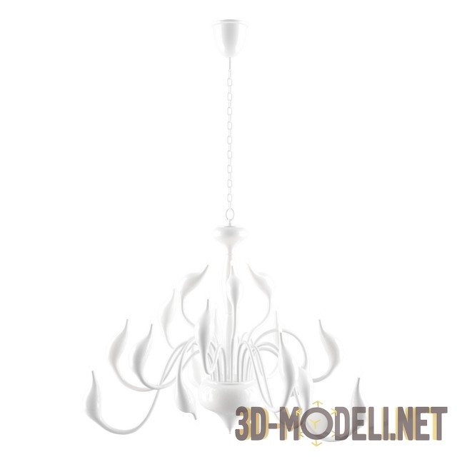 3D-модель оригинальной и современной люстры на 18 ламп от бренда Illuminati, серия Cigno, артикул MD 8098-18A. Размеры светильника: 150 х 86 см. Лампы с цоколем G4, по 20 Ватт. Основание и абажуры, выполненные в форме изящных лебедей, сделано из металла, окрашенного в белый или черный цвет. Влагозащита: IP20.