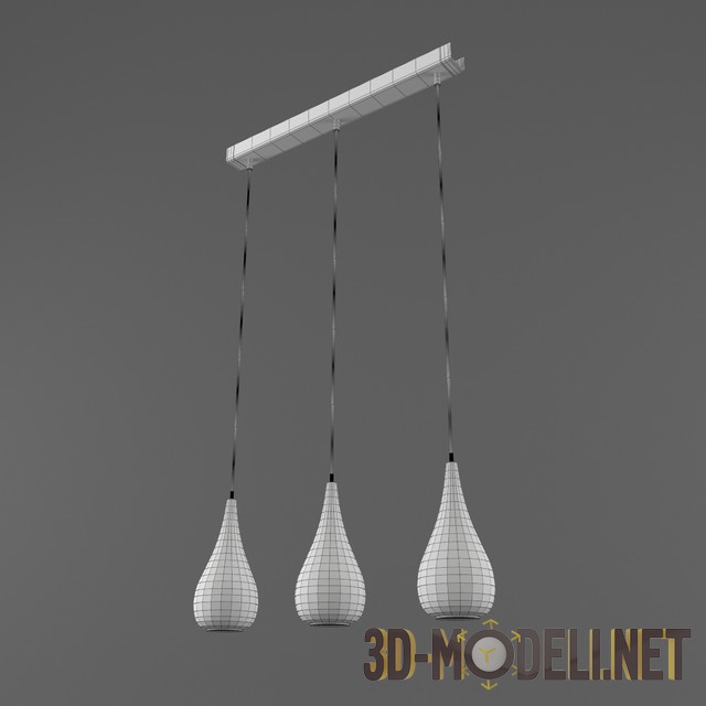 3d модель подвесного светильника из серии NAOMI Zuma Line P1305-03S-B5AB. Количество ламп: 3 шт., тип цоколя: E27. Мощность лампы составляет 60 Вт, общая мощность ламп: 180 Вт. Рекомендуемая площадь освещения для этого светильника до 15 . кв. Степень влагозащиты IP: IP20. Материалами для плафона (цвет белый) и основания выбраны стекло и металл, серебряного цвета.