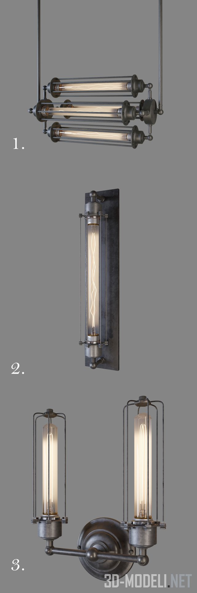 Серия светильников Loft Industrial Edison Cage в стиле индустриальный лофт. В них использована имитация лампы Эдисона в длинных колбах. Представлены три варианта: