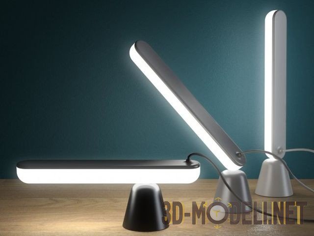Настольная лампа «Acrobat» от Normann Copenhagen, дизайнер: Marc Venot. Светильник состоит из двух отдельных частей, удерживаемых вместе сильным магнитом. Предусмотрен двухметровый шнур с переключателем. В качестве источника света выбраны светодиоды. Материалами для изготовления послужили пластик и акрил.