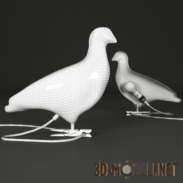 Функциональная лампа с оригинальным дизайном, Pigeon Light от Ed Carpenter, запущена в производство в 2003 году. Светильник состоит из акриловой пластмассовой оболочки, образованной в форме вездесущей городской птицы, а простая деревянная прищепка для одежды, прикрепленная к дюбелю, позволяет прикрепить светильник на полку или на любой гвоздь в стене. Габаритные размеры (в дюймах): 2 x 10 x 8,5. Для лампы предлагается шесть цветовых вариаций на выбор.