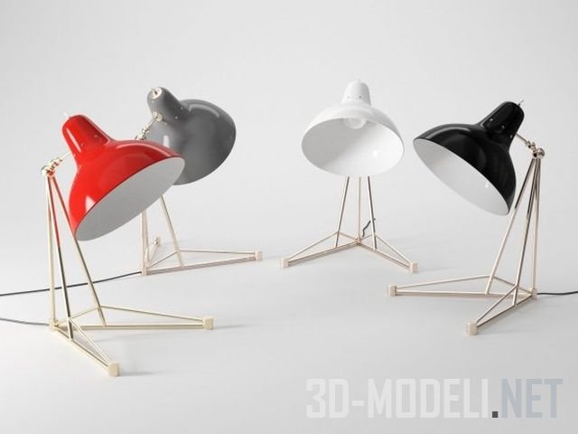 Настольная лампа с никелированной отделкой, глянцевый абажур может быть белого, серого, черного или красного цвета. Светильник хорошо впишется в атмосферу рабочего стола, и создаст функциональное, уютное освещение.