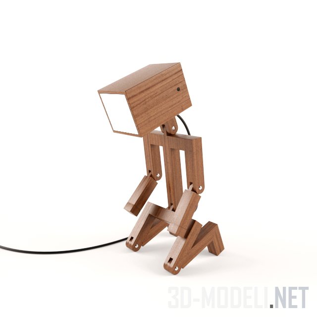 Современный вариант настольного освещения, лампа от Droid Design. Деревянный стилизованный человечек способен менять позы, что позволяет настраивать разные уровни и позиции для светильника.