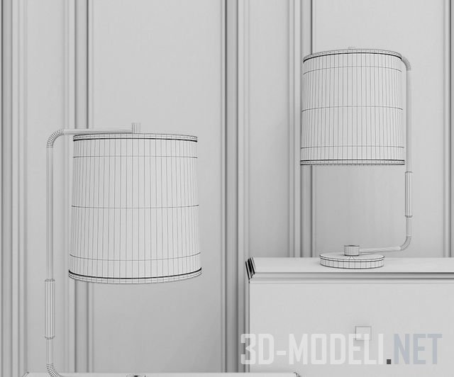 Пара современных настольных светильников BBL3070SB-S BBL3070SS-S от Visual Comfort. Габариты светильников 29, х 53,3 х 33,3 см. Отличия моделей в цвете металлических деталей: светильники представлены в золотистом и серебристом цветах. Конструкция светильника минималистична и проста: на небольшой круглой базе размещена «С»-образная скоба подставки из тонкой трубки. На скобе имеется небольшая белая вставка. К верхней точке скобы подвешен цилиндр белого тканевого абажура.