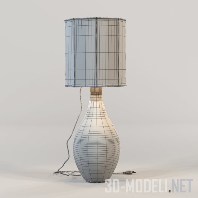 Настольная лампа в ретро-стиле Ochre - Cherub с охристого цвета шелковым абажуром на проволочном каркасе. Абажур размещен на стеклянной ножке в виде изящной бутыли с узким горлышком, из дымчатого стекла. К патрону для лампы тянется стильный электрический шнур в нитяной оплетке, отсылающий к электро-бытовой технике средины ХХ века.