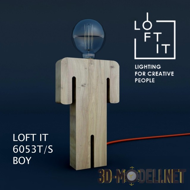 3d модель светильников LOFT IT 6053T/S GIRL и LOFT IT 6053T/S BOY. Оригинальные настольные лампы, выполненные из светлого дерева, в форме фигурок. Артикулы: 6053T/S GIRL и 6053T/S BOY