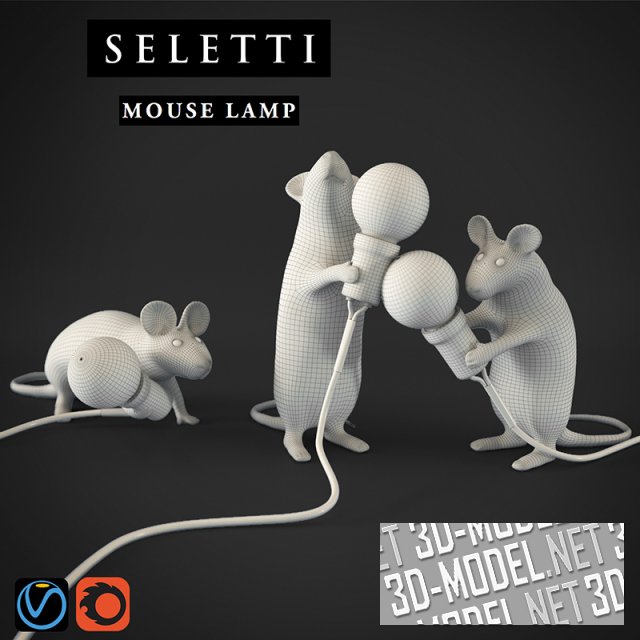 Светильники в виде белых мышек с лампочками в передних лапках от SELETTI. Детально проработанные фигурки представлены в трех вариантах. Мышки держат белые патроны с вкрученными лампочками с прозрачными колбами.