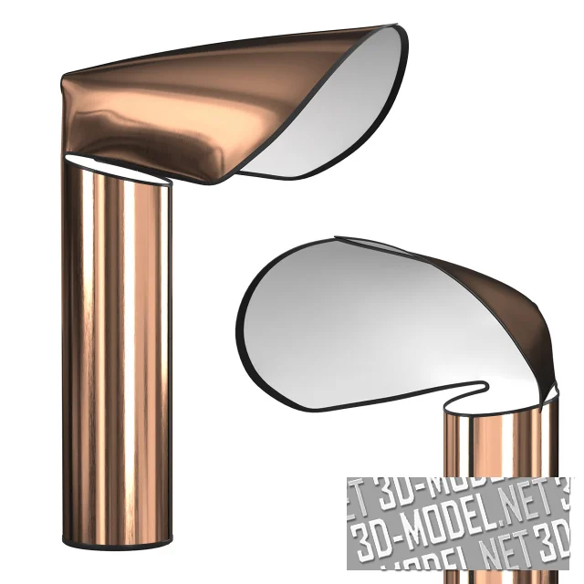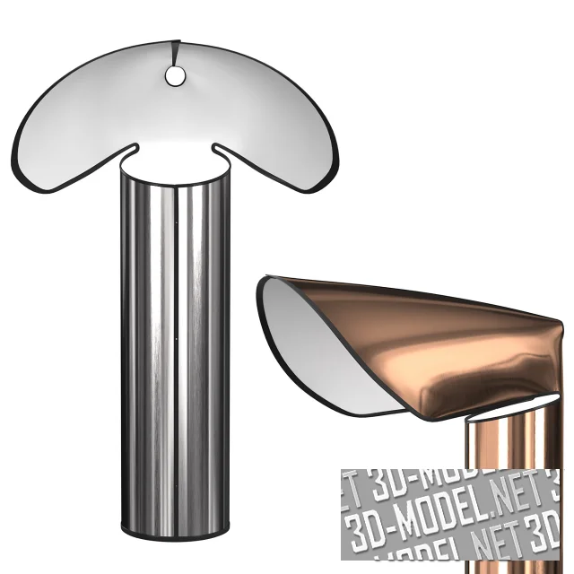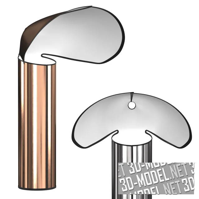 Современный оригинальный настольный светильник Chiara от Flos (дизайнер: Mario Bellini). Корпус (цилиндрическая опора и рефлектор) выполнены из цельного листа алюминия, выкроенного и согнутого определенным образом. В трубе опоры смонтирован патрон с лампой. Внутренняя плоскость рефлектора отделана белой пленкой. Наружная плоскость представлена в двух декорах: золотистый и серебристый металл.
