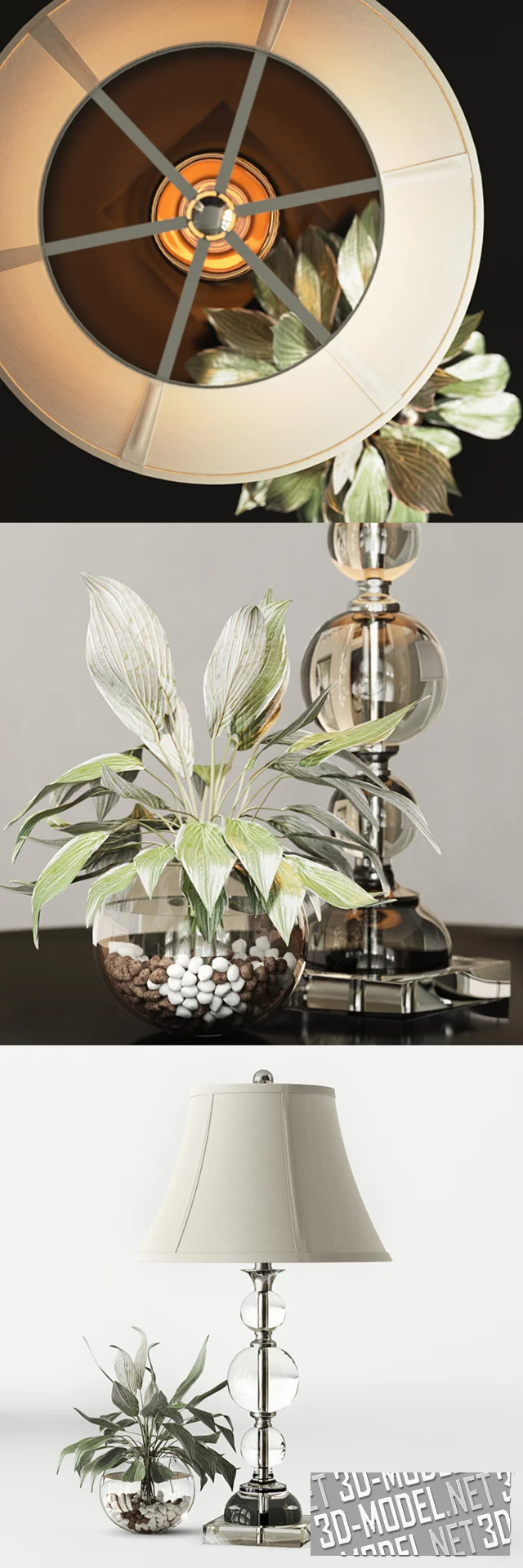 Эстетичная композиция, в главной роли которой настольный светильник Uttermost Briley. Лампа имеет оригинальное основание из стеклянных шаров, которое смотрится очень элегантно и легко. Абажур из светлой ткани идеально подходит к такой основе. Ваза с растением органично дополняет сет.
